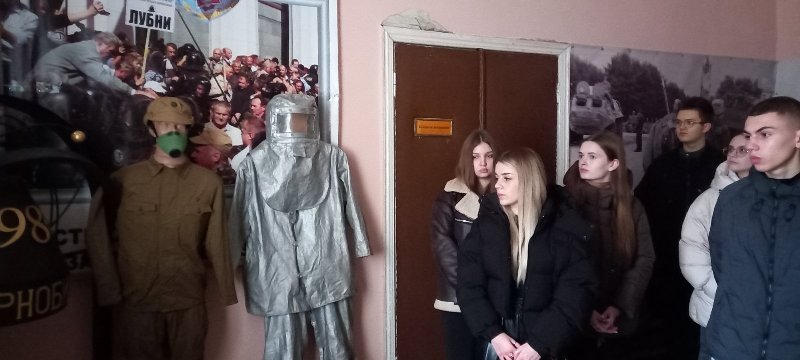 До Дня вшанування учасників ліквідації наслідків аварії на Чорнобильській АЕС студенти Лубенського медичного фахового коледжу під керівництвом викладача історії Миколи Шевченка здійснили екскурсію до музейної кімнати ЛМГОІ «Ветерани Чорнобиля».